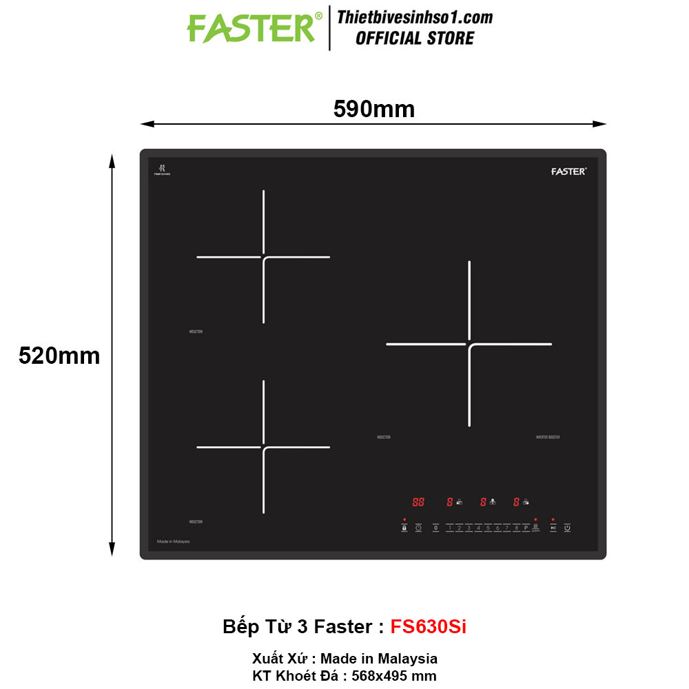 - KT Mặt Kính : 590x520 mm - KT Khoét Đá : 568x495 mm - Bảo Hành : 3 Năm - Mã Sản Phẩm : Faster FS630Si - Xuất Xứ : Made in Malaysia