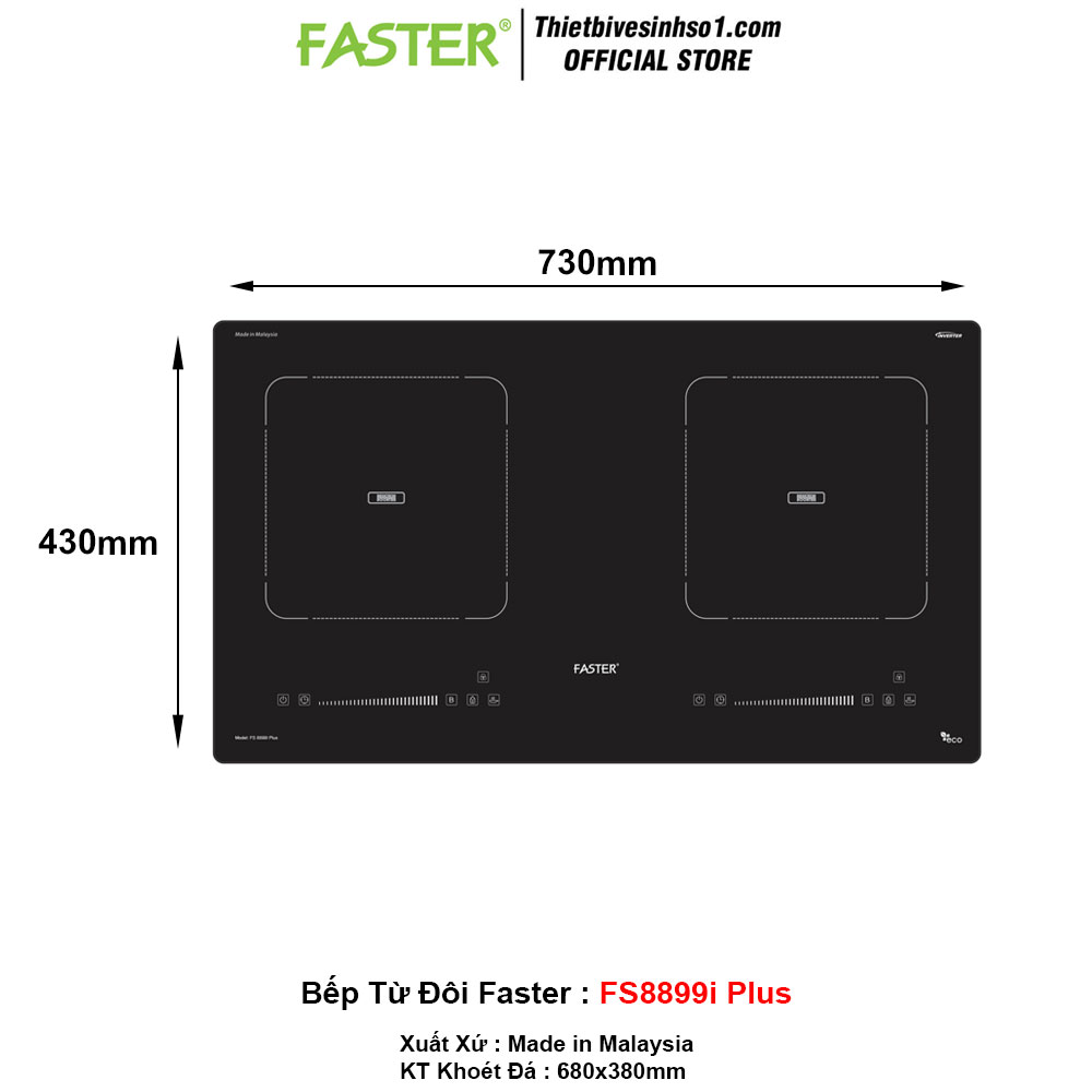 - KT Mặt Kính : 730x430 mm - KT Khoét Đá : 680x380 mm - Bảo Hành : 3 Năm - Mã Sản Phẩm : Faster FS8899i Plus - Xuất Xứ : Made in Malaysia