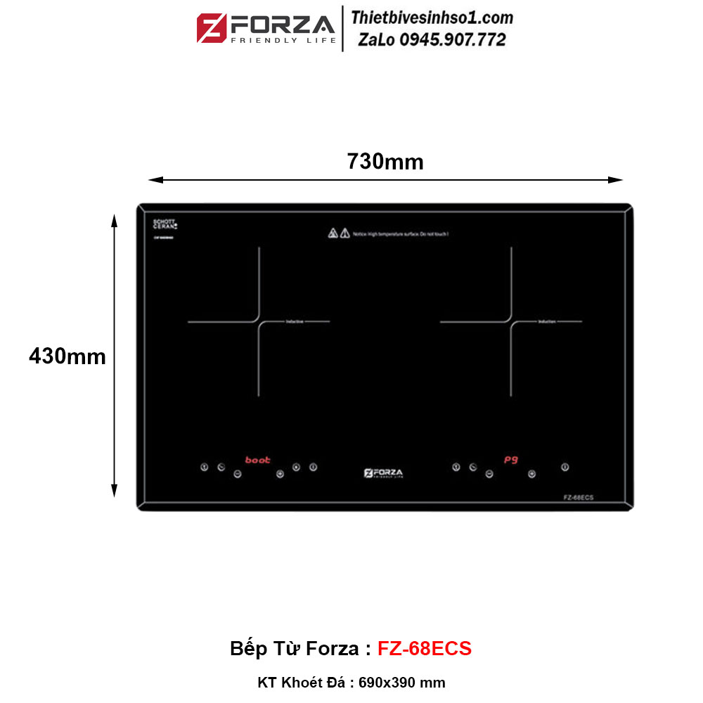 - Kích Thước : 730x430 mm - Kích Thước Cắt Đá : 690x390 mm - Mã Sản Phẩm : Forza FZ-68ECS - Điện Áp : 220V/50Hz