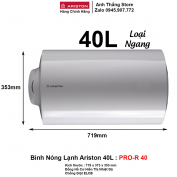 - Bảo hành: 7 Năm Chính Hãng - Xuất xứ: Ariston Chính Hãng - Mã Sản Phẩm : Ariston PRO-R 40 - Dung Tích : 40 Lít - Chưa Bao Gồm Dây Cấp - Chưa Bao Gồm Lắp Đặt