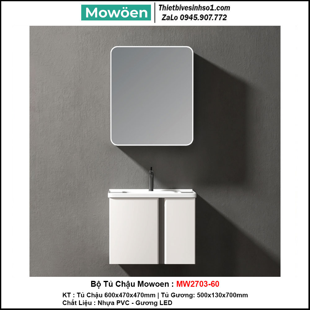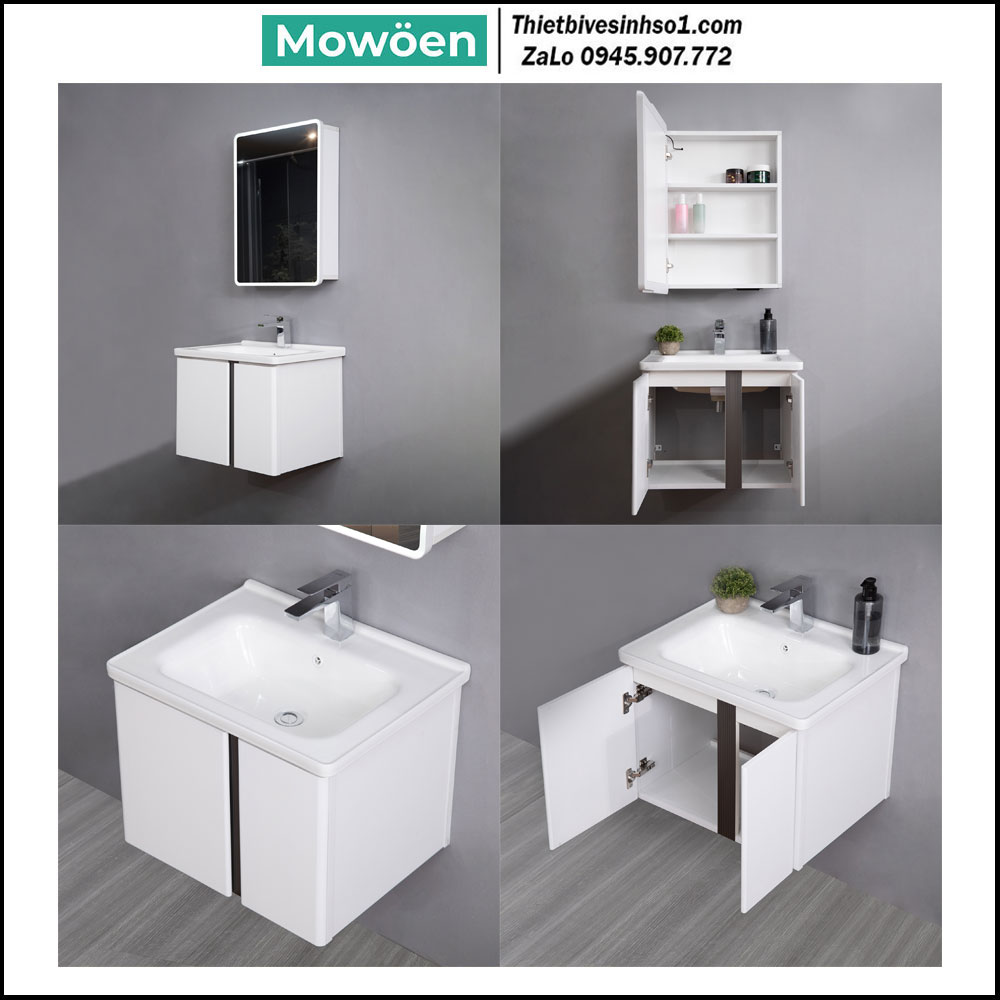 Tủ lavabo nhựa treo tường phòng tắm Mowoen MW2703-60 thiết kế phong cách hiện đại, sử dụng tiện nghi, giúp quá trình dọn dẹp, vệ sinh thuận tiện và dễ dàng. Các vật dụng nhà tắm được sắp xếp trong các ngăn tủ lavabo giúp không gian phòng tắm gọn gàng, ngăn nắp hơn.