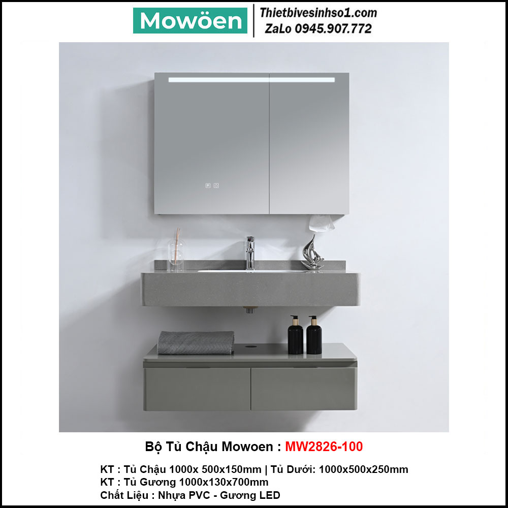 Tủ lavabo nhựa treo tường phòng tắm Mowoen MW2826-100 thiết kế phong cách hiện đại, sử dụng tiện nghi, giúp quá trình dọn dẹp, vệ sinh thuận tiện và dễ dàng. Các vật dụng nhà tắm được sắp xếp trong các ngăn tủ lavabo giúp không gian phòng tắm gọn gàng, ngăn nắp hơn.