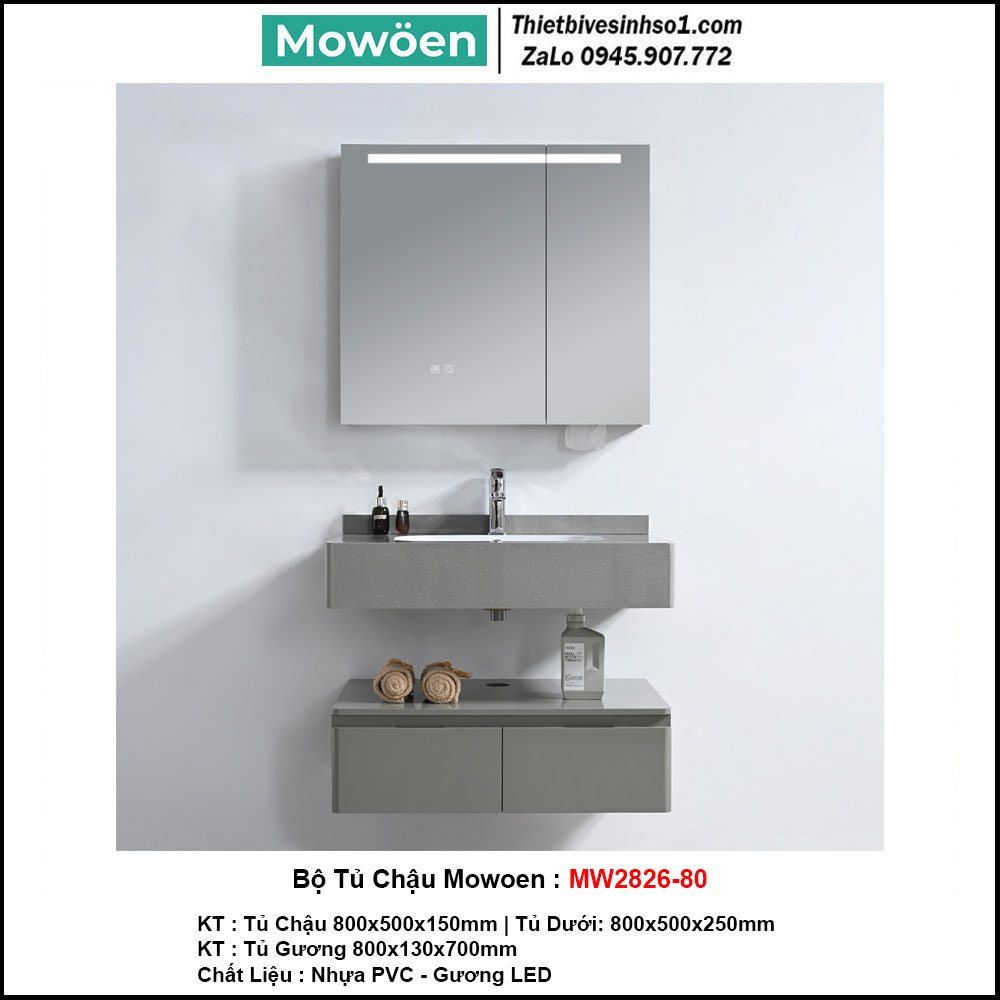 Tủ lavabo nhựa treo tường phòng tắm Mowoen MW2826-80 thiết kế phong cách hiện đại, sử dụng tiện nghi, giúp quá trình dọn dẹp, vệ sinh thuận tiện và dễ dàng. Các vật dụng nhà tắm được sắp xếp trong các ngăn tủ lavabo giúp không gian phòng tắm gọn gàng, ngăn nắp hơn.
