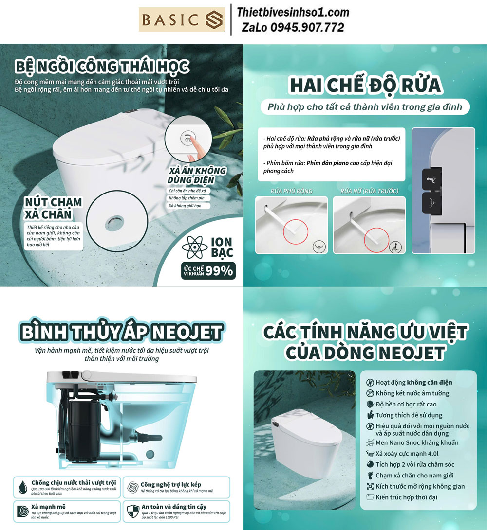 Bồn Cầu Thông Minh Điện Tử Basics NEOJET NEO-100