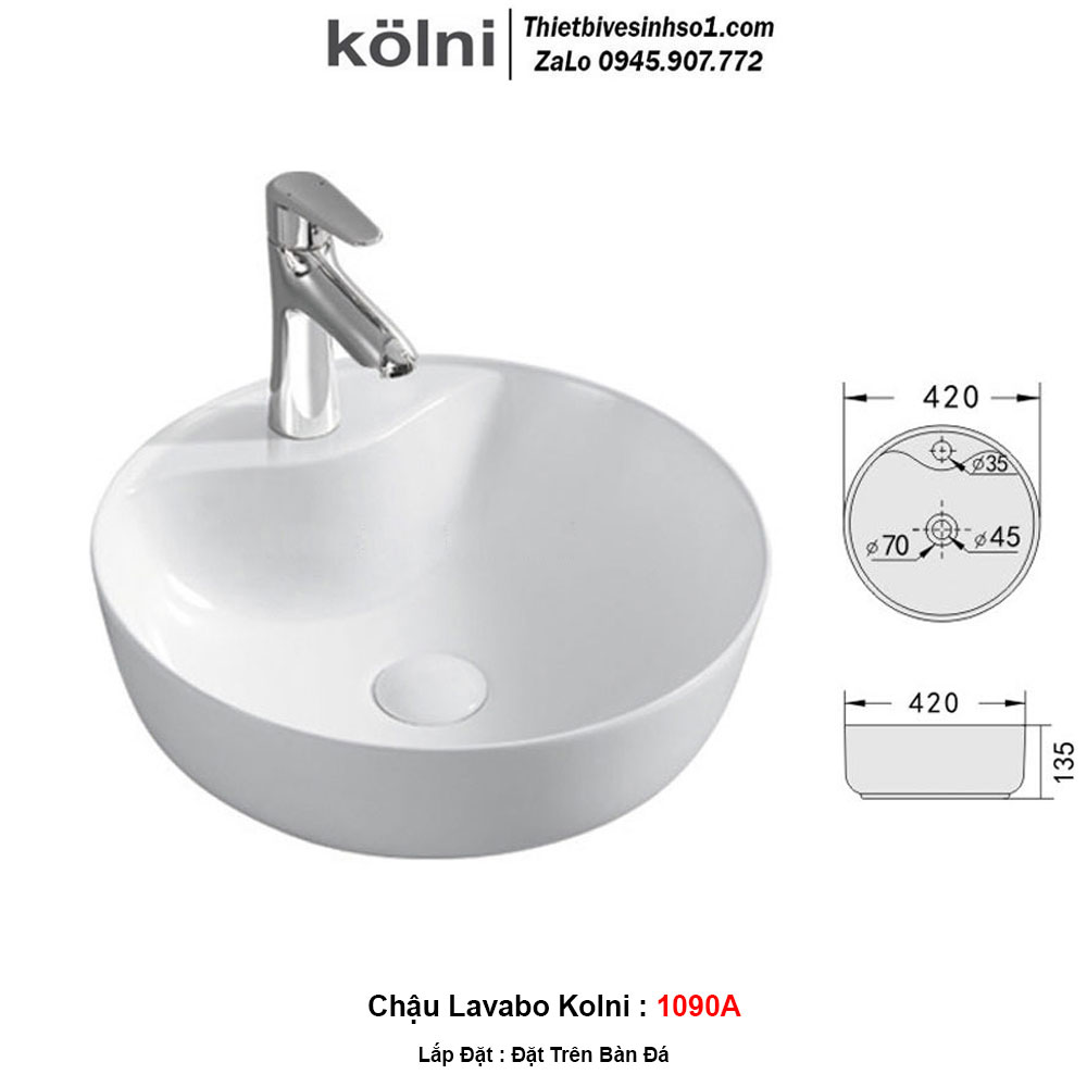 - Kích Thước: 420x420x135 mm - Bảo hành: Chính Hãng - Xuất xứ: Kolni Chính Hãng - Mã Sản Phẩm : Kolni 1090A - Kiểu Dáng : Đặt Trên Bàn Đá - Chưa Bao Gồm Vòi Rửa + Xi Phông Thoát Nước