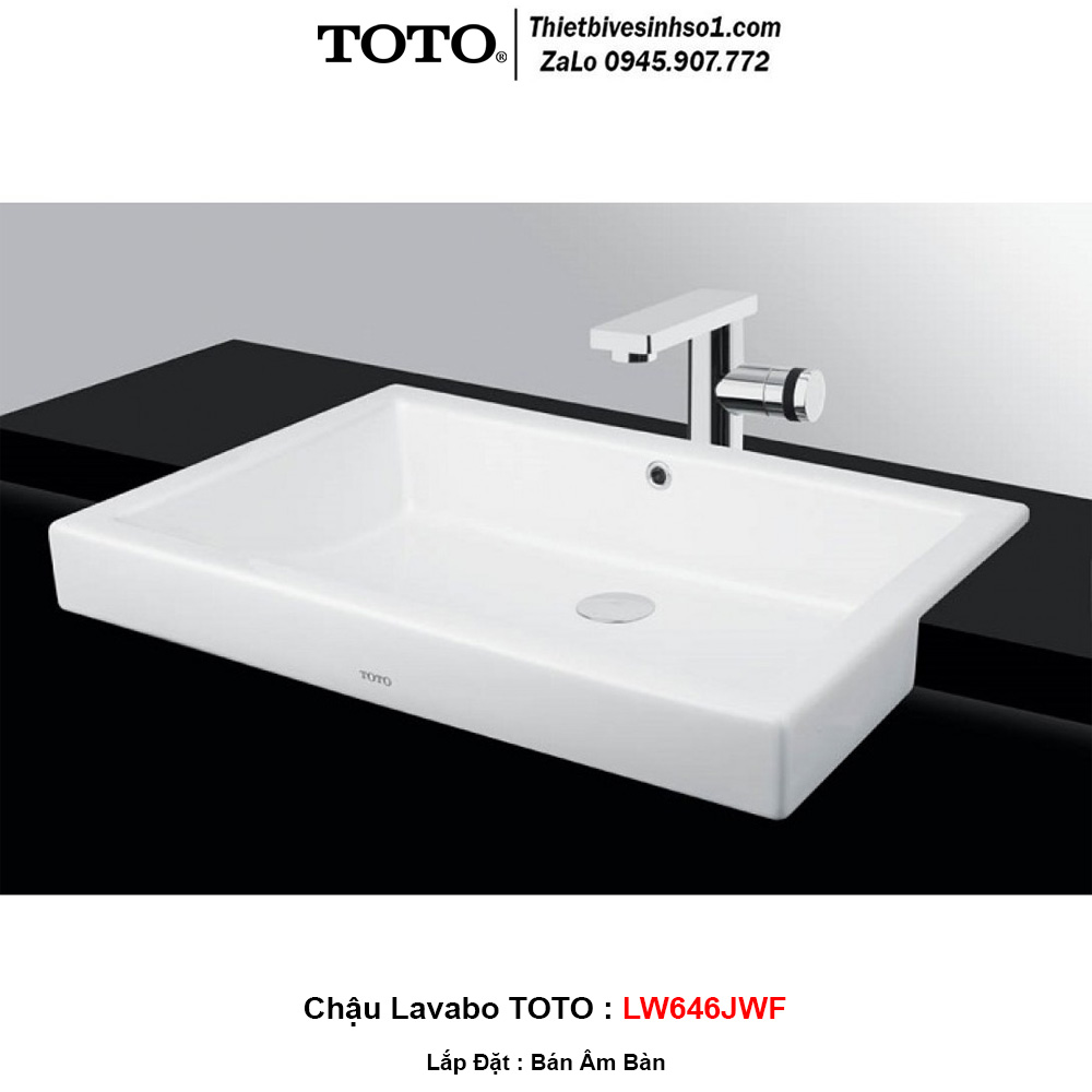 - KT : 600x400 mm - Bảo Hành : Chính Hãng - Mã Sản Phẩm : TOTO LW646JWF - Lắp Đặt : Bán Âm Bàn - Không Bao Gồm Vòi Rửa + Xi Phông Thoát Nước