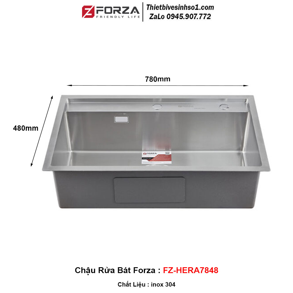 - Kích Thước : 780x480 mm - Chất liệu: inox 304 Đúc Mờ - Model: FORZA FZ-HERA7848 - Kiểu Dáng : 1 Hố - Bao Gồm : Rổ Rút inox + Xi Phông Thoát Nước