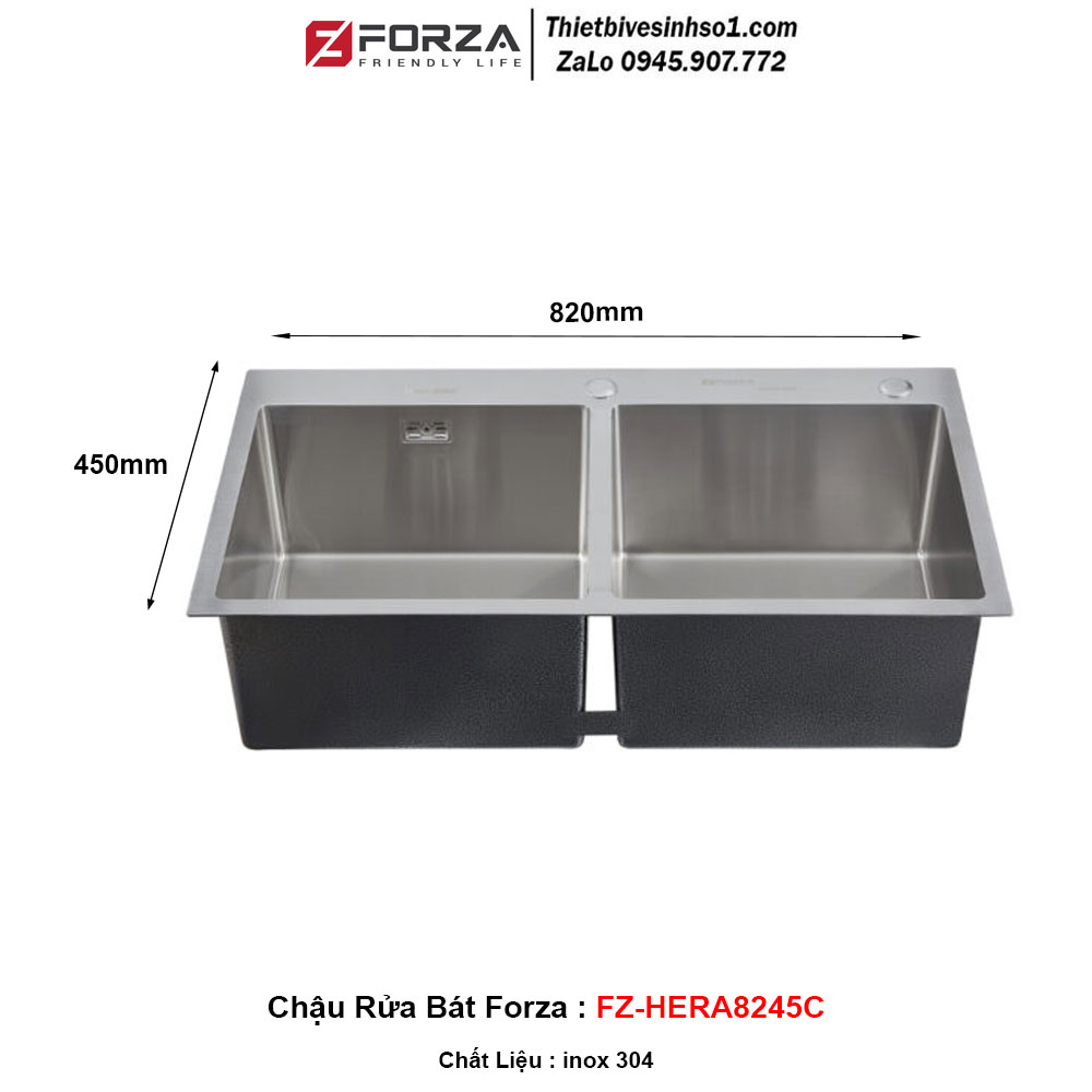 - Kích Thước : 820x450 mm - Chất liệu: inox 304 Đúc Mờ - Model: FORZA FZ-HERA8245C - Kiểu Dáng : 2 Hố Cân - Bao Gồm : Rổ Rút inox + Xi Phông Thoát Nước
