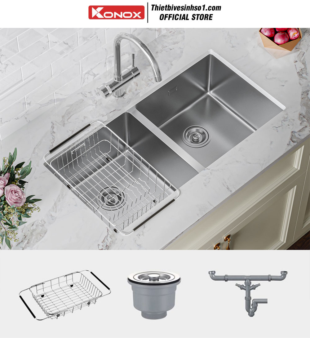 Xin kính chào quý khách đến với Tổng Kho Anh Thắng. Đáp ứng nhu cầu mua Thiết Bị Bếp Konox chính hãng loại 1,chúng tôi là đơn vị tiên phong dẫn đầu về cung cấp Chậu Rửa Bát Konox khu vực miền Bắc. Để đảm bảo khách hàng mua không bị đắt cũng như sai lệch về màu sắc,kích thước,chủng loại,mã số...chúng tôi đã ghi tất cả thông tin chi tiết trên từng hình ảnh của sản phẩm với độ chính xác tuyệt đối đúng theo nhà sản xuất công bố. Mọi phản hồi của quý khách xin vui lòng liên hệ Mr Thắng 0945907772 có Zalo trực 24/24h để giải đáp mọi yêu cầu của quý khách.