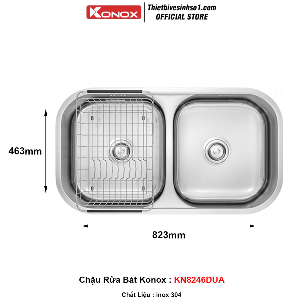- Kích Thước : 823x463x230 mm - Mã Sản Phẩm : KN8246DUA - Chất Liệu : inox 304 - Xuất Xứ : Chính Hãng - BH 10 Năm - Bao Gồm : Siphon + Rổ Úp Bát - Không Bao Gồm Vòi Rửa