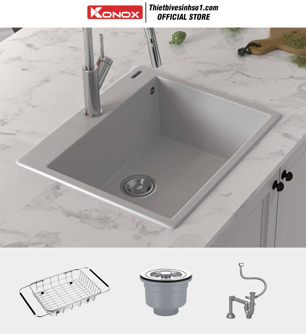 Chậu Rửa Bát Konox Ruvita 680 White Silver