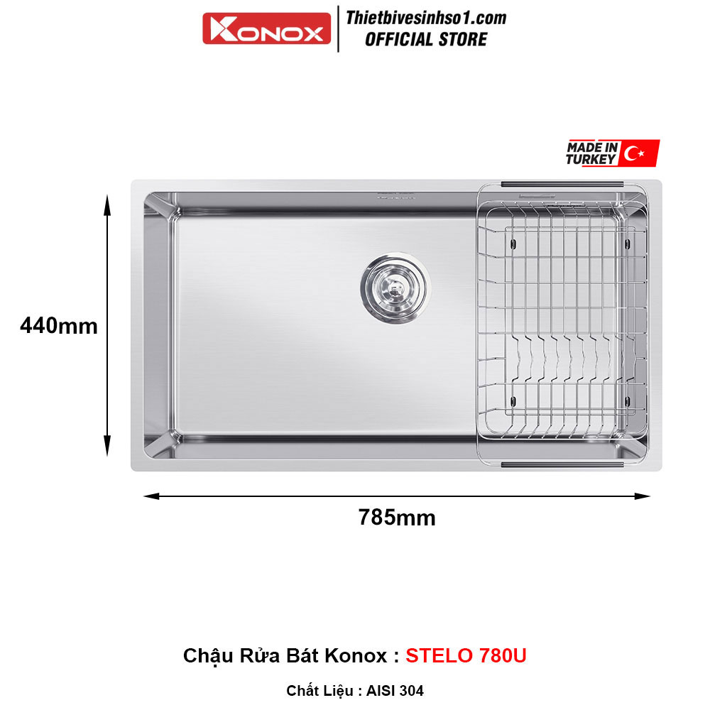 - Kích Thước : 785x440x228 mm - Mã Sản Phẩm : STELO 780U - Chất Liệu : AISI 304 - Xuất Xứ : Made in Turkey - BH 10 Năm - Bao Gồm : Siphon + Giá Úp Bát inox - Không Bao Gồm Vòi Rửa