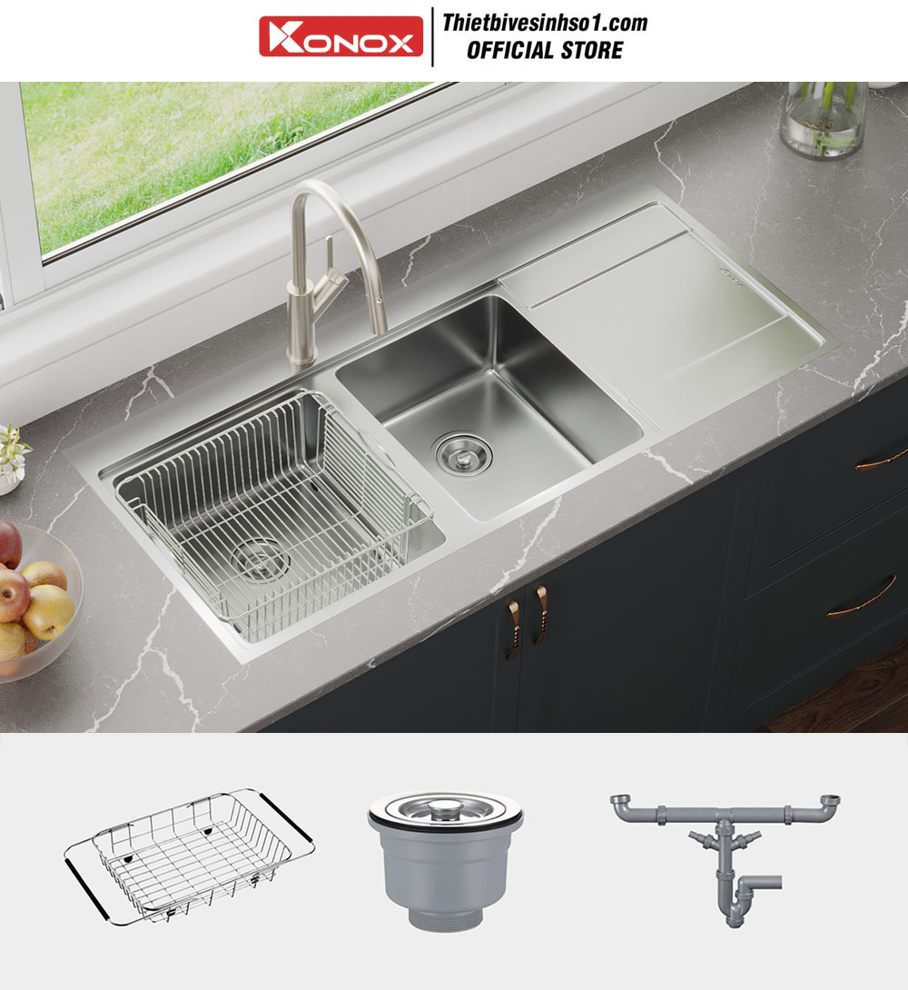Xin kính chào quý khách đến với Tổng Kho Anh Thắng. Đáp ứng nhu cầu mua Thiết Bị Bếp Konox chính hãng loại 1,chúng tôi là đơn vị tiên phong dẫn đầu về cung cấp Chậu Rửa Bát Konox khu vực miền Bắc. Để đảm bảo khách hàng mua không bị đắt cũng như sai lệch về màu sắc,kích thước,chủng loại,mã số...chúng tôi đã ghi tất cả thông tin chi tiết trên từng hình ảnh của sản phẩm với độ chính xác tuyệt đối đúng theo nhà sản xuất công bố. Mọi phản hồi của quý khách xin vui lòng liên hệ Mr Thắng 0945907772 có Zalo trực 24/24h để giải đáp mọi yêu cầu của quý khách.
