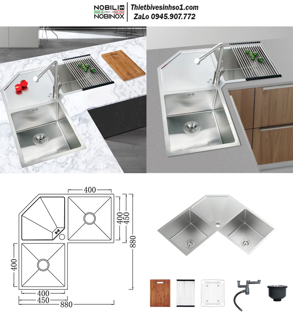 - Kích Thước: 880x880x230 mm - Chất Liệu : AISI 304 - Mã Sản Phẩm : Nobinox LIKEN NL700 - Xuất Xứ : PRC - Bao Gồm : Bộ Xi Phông + Thớt Tre + Dây Lưới + Rổ - Chưa Bao Gồm Vòi Rửa