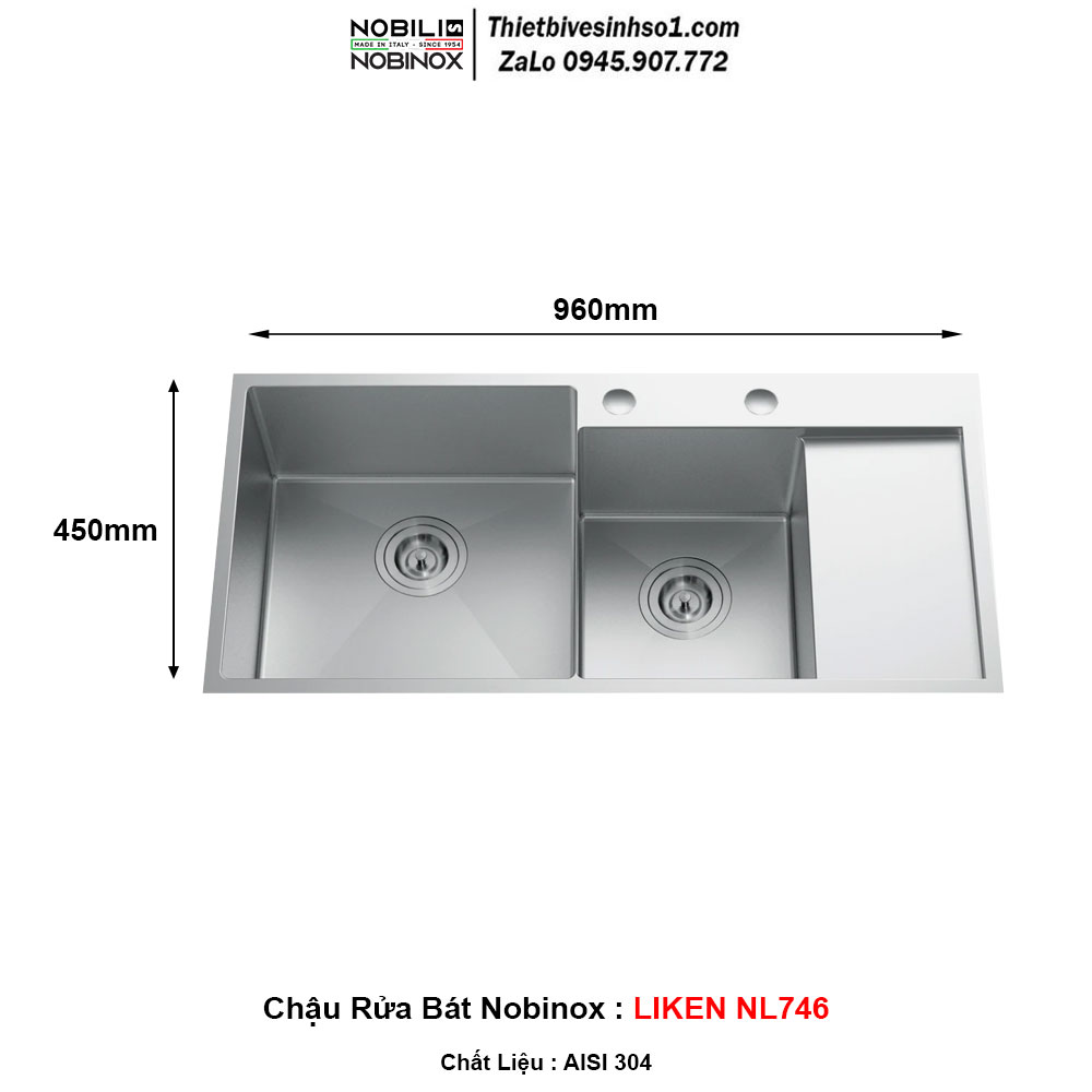- Kích Thước: 960x450x230 mm - Kích Thước Cắt Dương: 930x420 mm - Chất Liệu : AISI 304 - Mã Sản Phẩm : Nobinox LIKEN NL746 - Xuất Xứ : PRC - Bao Gồm : Bộ Xi Phông + Thớt Tre + Rổ + Dây Lưới + Bình Đựng Nước Rửa Bát - Chưa Bao Gồm Vòi Rửa