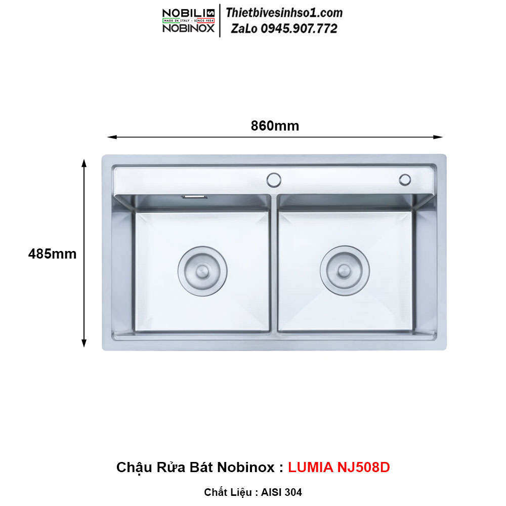 - Kích Thước: 860x485x230 mm - Kích Thước Cắt Đá Dương: 830x450 mm - Chất Liệu : AISI 304 - Mã Sản Phẩm : Nobinox LUMIA NJ508D - Xuất Xứ : PRC - Bao Gồm : Bộ Xi Phông + Thớt Gỗ + Rổ LK + Bình Đựng Nước Rửa Bát - Chưa Bao Gồm Vòi Rửa