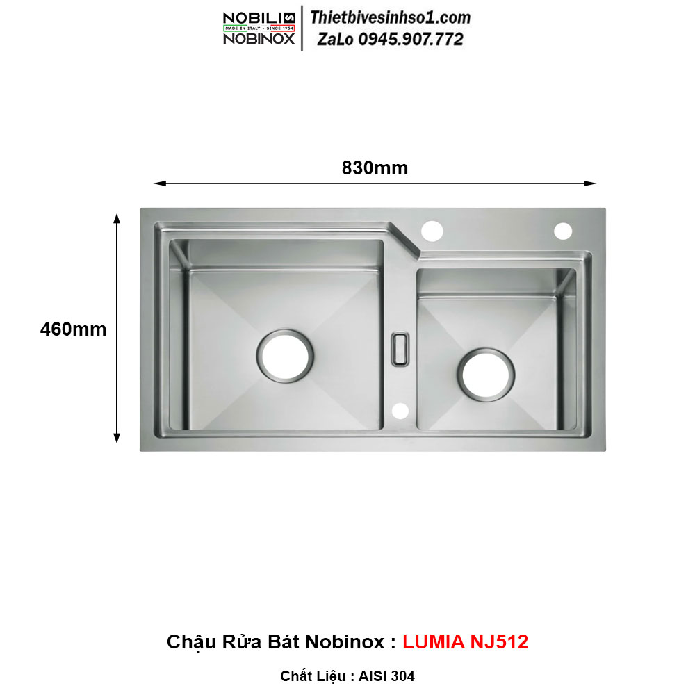 - Kích Thước: 830x460x230 mm - Kích Thước Cắt Dương: 800x430 mm - Chất Liệu : AISI 304 - Mã Sản Phẩm : Nobinox LUMIA NJ512 - Xuất Xứ : PRC - Bao Gồm : Bộ Xi Phông + Thớt Gỗ + Rổ LK + Dây Lưới + Bình Đựng Nước Rửa Bát - Chưa Bao Gồm Vòi Rửa