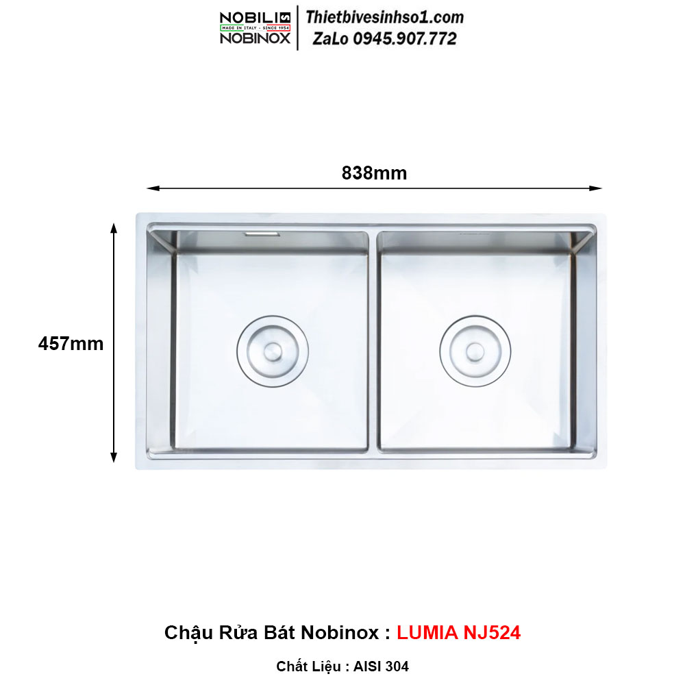 - Kích Thước: 838x457x230 mm - Kích Thước Cắt Âm: 797x417 mm - Chất Liệu : AISI 304 - Mã Sản Phẩm : Nobinox LUMIA NJ524 - Xuất Xứ : PRC - Bao Gồm : Bộ Xi Phông + Thớt Gỗ + Rổ LK + Dây Lưới - Chưa Bao Gồm Vòi Rửa