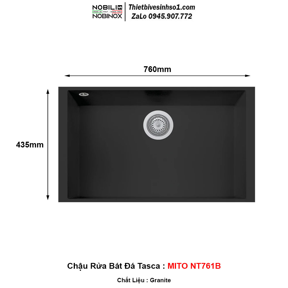 - Kích Thước: 760x435x200 mm - Kích Thước Cắt Đá Âm: 688x398 mm - Chất Liệu : Granite - Mã Sản Phẩm : Tasca MITO NT761B - Xuất Xứ : Nhập Khẩu 100% Ý - Bao Gồm : Bộ Xi Phông - Phụ Kiện (Mua Thêm) : Dây Lưới + Rổ VY - Chưa Bao Gồm Vòi Rửa