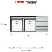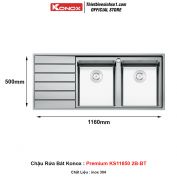 - Kích Thước : 1160x500x210 mm - Mã Sản Phẩm : Premium KS11650 2B-BT - Chất Liệu : inox 304 - Xuất Xứ : Chính Hãng - BH 10 Năm - Bao Gồm : Siphon + Giá Úp Bát inox - Không Bao Gồm Vòi Rửa