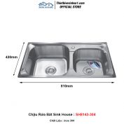 - Kích Thước : 810x430x220 mm - Chất Liệu: inox 304 - Model: Sink House SH8143-304 - Kiểu Dáng : 2 Hố - Bao Gồm : Xi Phông Thoát Nước