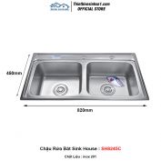 - Kích Thước : 820x450x220 mm - Chất Liệu: inox 201 - Model: Sink House SH8245C - Kiểu Dáng : 2 Hố - Bao Gồm : Xi Phông Thoát Nước