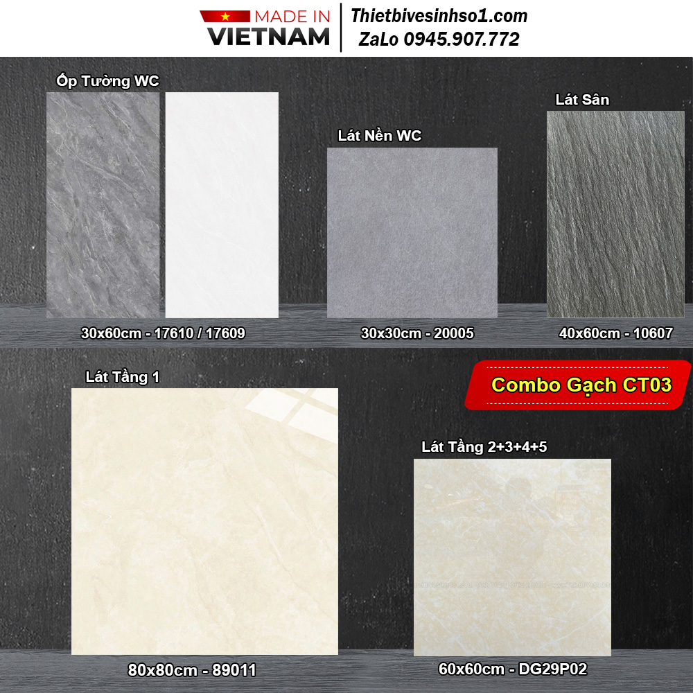 Để đồng bộ cách bày trí cho nhà vệ sinh, thông thường các khách hàng mất khá nhiều thời gian để lựa chọn sản phẩm sao cho phù hợp với kiến trúc. Chính vì vậy, mua trọn bộ combo Trọn Bộ Gạch Ốp Lát Vân Vàng CT03 giúp khách hàng đơn giản trong việc chọn lựa mà vẫn đảm bảo tính đồng bộ, phát huy tối đa công năng và tiết kiệm chi phí mua là giải pháp tốt nhất.