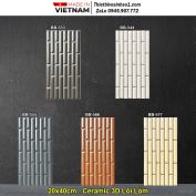 - Chất Liệu : Ceramic 3D Lồi Lõm - Loại : 1 - Kích Thước: 200x400 mm - Mã Sản Phẩm : BB - Đơn Vị Tính: M2 - Free Ship Hà Nội Số Lượng 40m2 trở lên