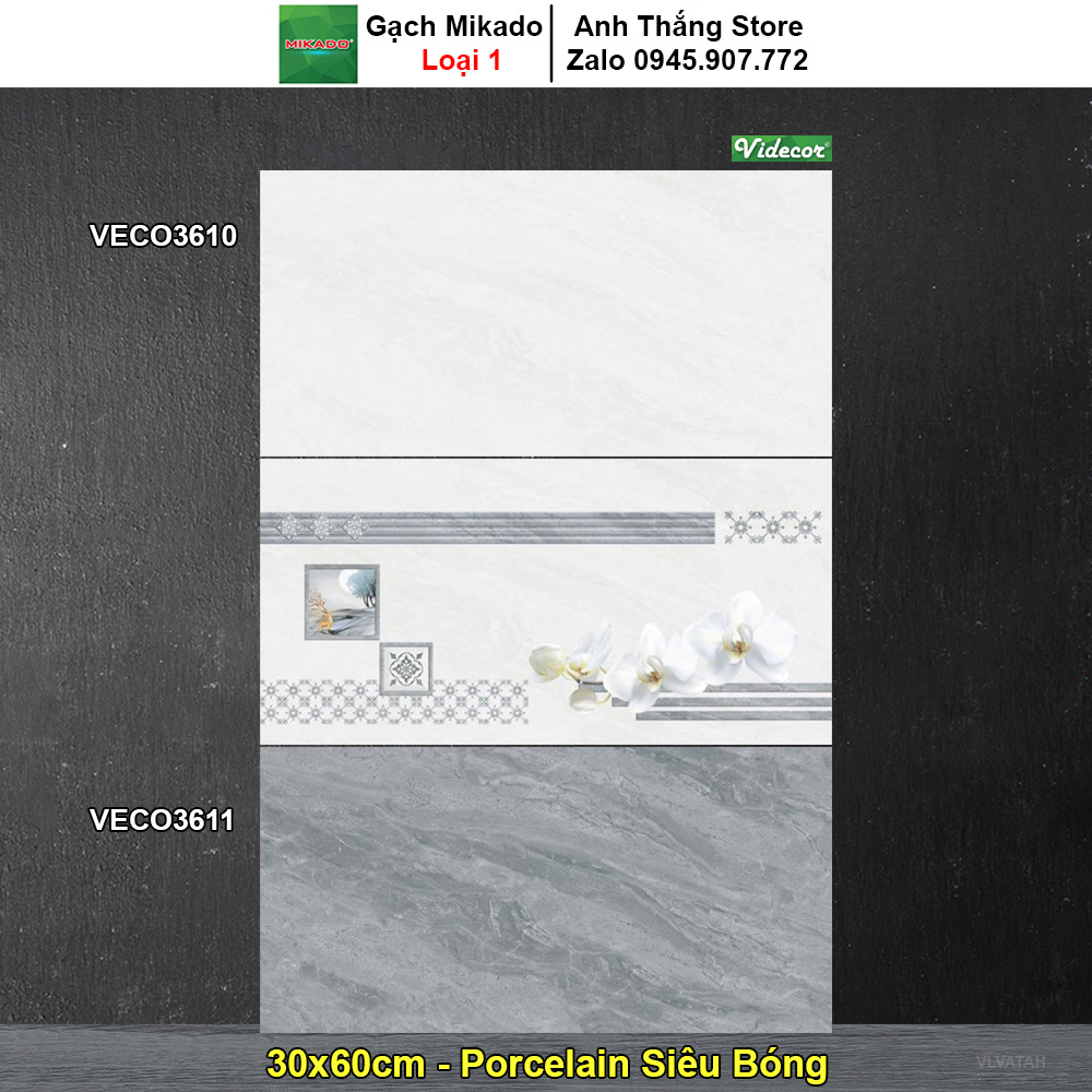 - Chất Liệu: Porcelain Siêu Bóng - Loại : A1 - Kích Thước: 300x600 mm - Mã Sản Phẩm : VECO3611-VECO3610 - Bộ Sưu Tập : Videcor - Đơn Vị Tính: M2 - Free Ship Hà Nội Số Lượng 40m trở lên