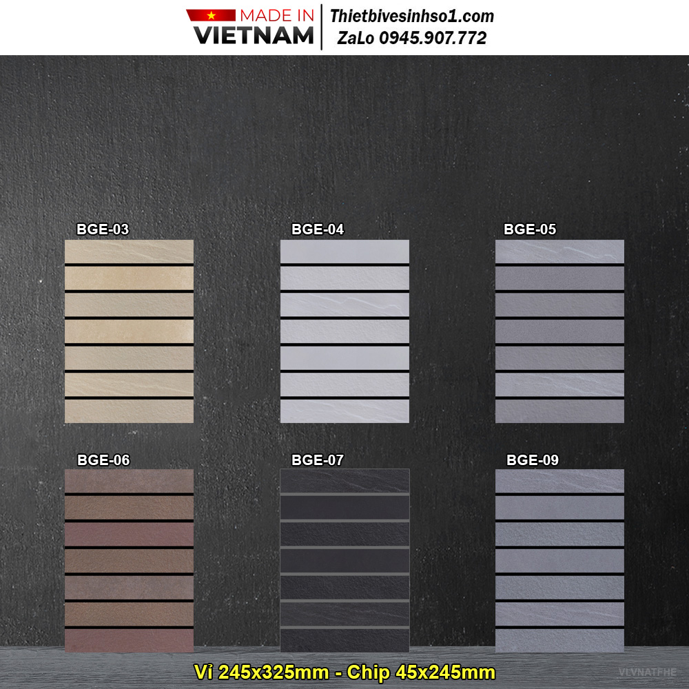 - Chất Liệu: Granite Ép Vỉ - Loại : 1 - Kích Thước Vỉ : 245x325 mm - Mã Sản Phẩm : Việt Nhật BGE - Hãng Sản Xuất: Việt Nhật - Đơn Vị Tính: M2 - Riêng Màu BGE-06 Giá : 745k/M2 - Free Ship Hà Nội Số Lượng 40m2 trở lên