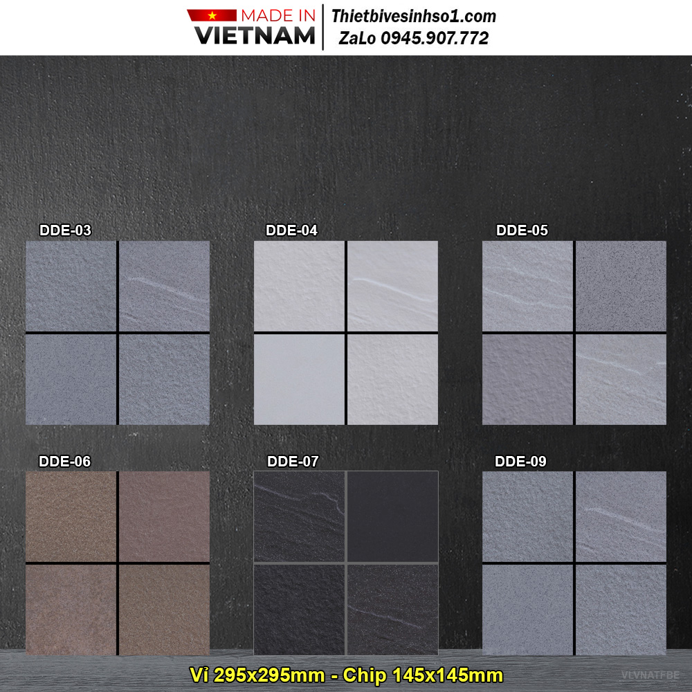 - Chất Liệu: Granite Ép Vỉ - Loại : 1 - Kích Thước Vỉ : 295x295 mm - Mã Sản Phẩm : Việt Nhật DDE - Hãng Sản Xuất: Việt Nhật - Đơn Vị Tính: M2 - Riêng Màu DDE-06 Giá : 685k/M2 - Free Ship Hà Nội Số Lượng 40m2 trở lên