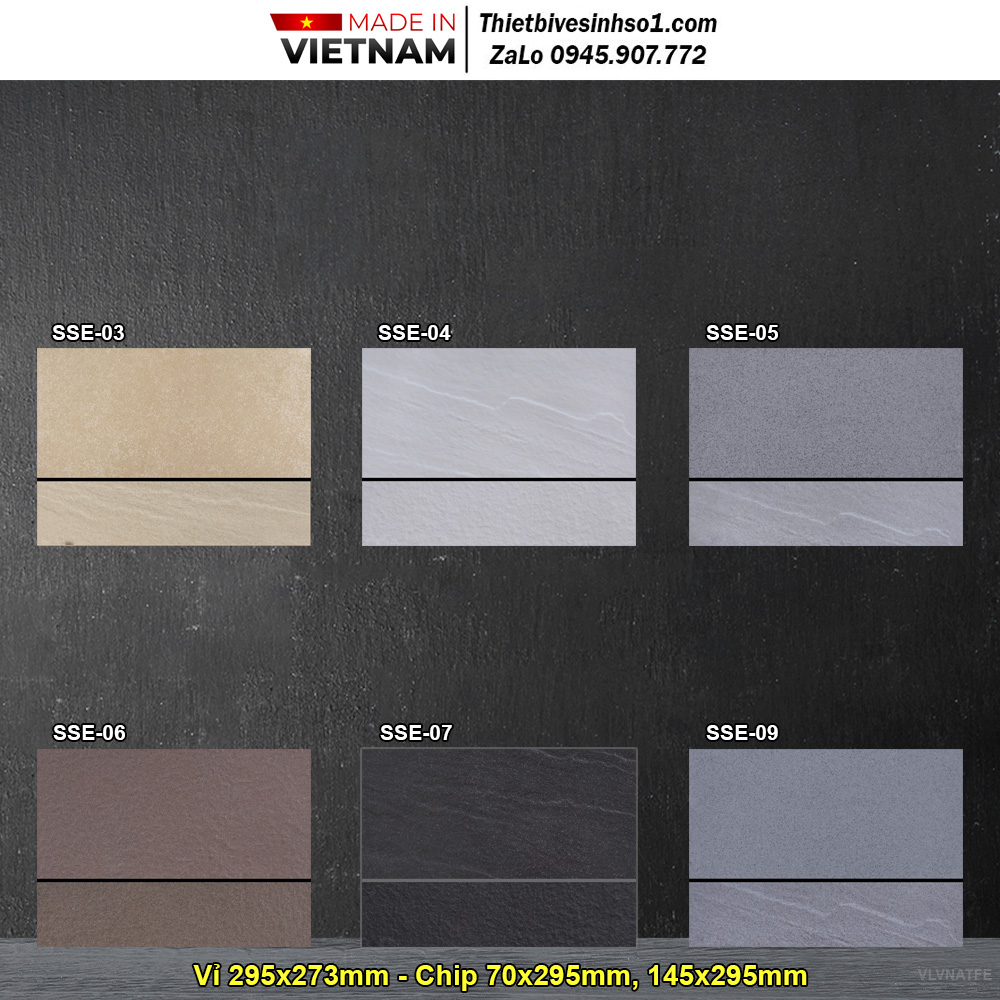 - Chất Liệu: Granite Ép Vỉ - Loại : 1 - Kích Thước Vỉ : 295x273 mm - Mã Sản Phẩm : Việt Nhật SSE - Hãng Sản Xuất: Việt Nhật - Đơn Vị Tính: M2 - Riêng Màu SSE-06 Giá : 710k/M2 - Free Ship Hà Nội Số Lượng 40m2 trở lên