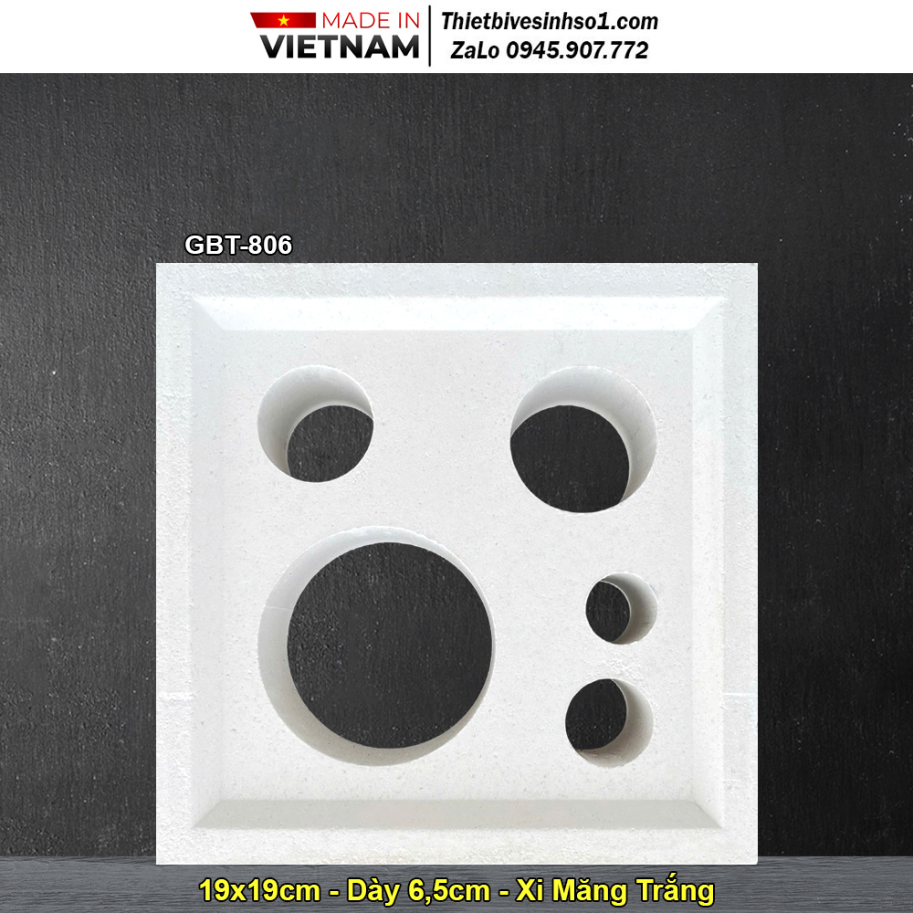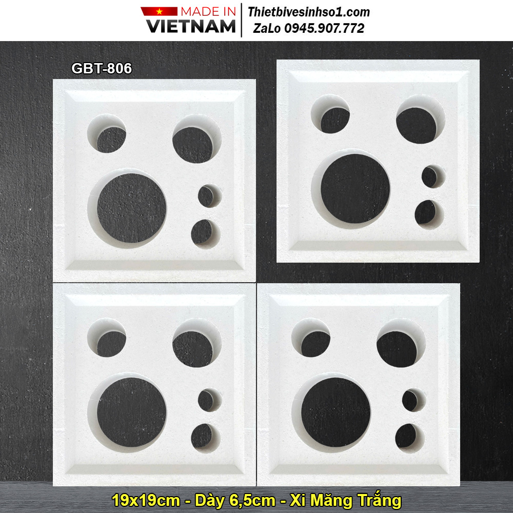 -Loại : 1 -Kích Thước: 190x190x65 mm -Diện Tích: 25 viên/m2 -Mã Sản Phẩm : GBT-806 -Chất Liệu: Xi Măng Trắng -Đơn Vị Tính: Viên