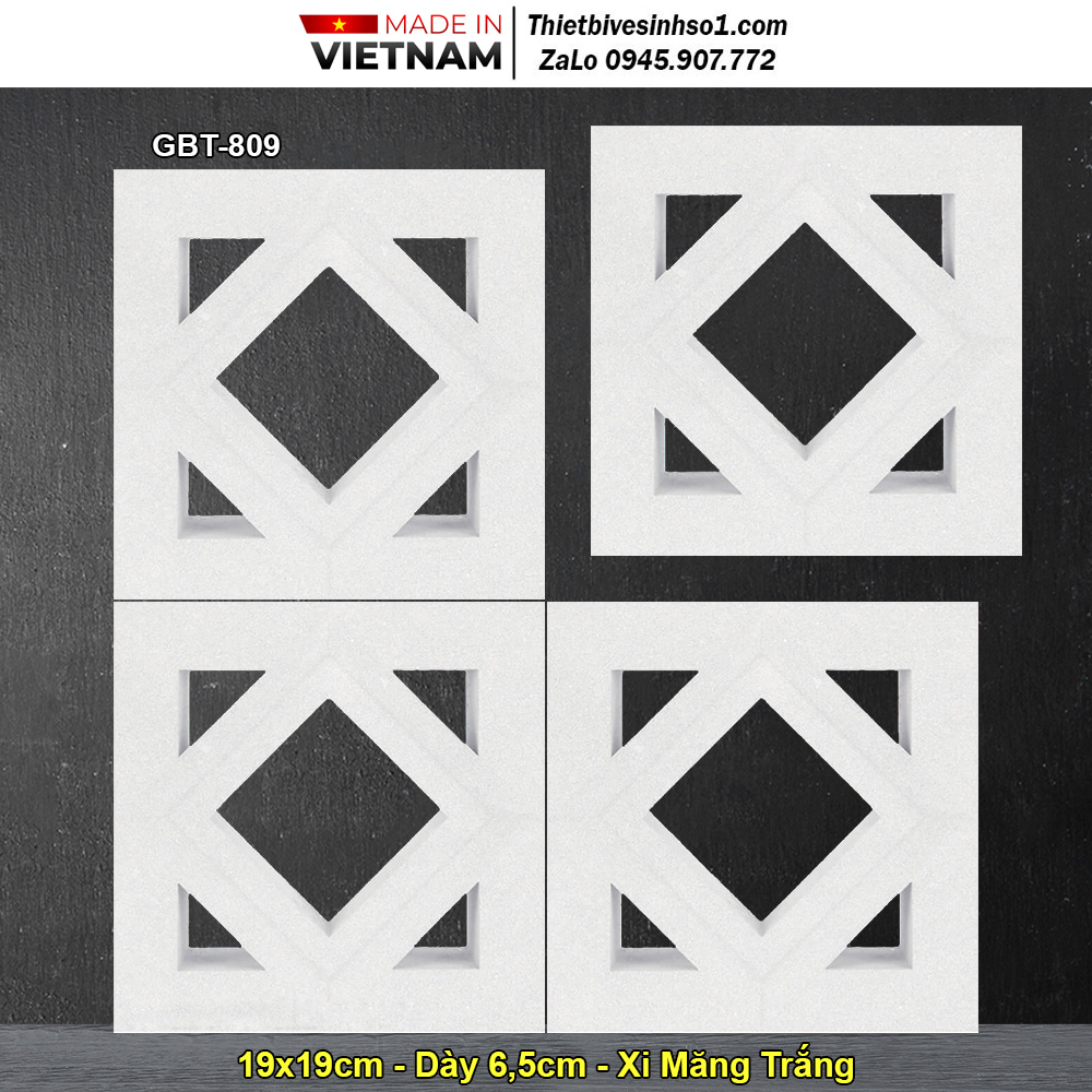 -Loại : 1 -Kích Thước: 190x190x65 mm -Diện Tích: 25 viên/m2 -Mã Sản Phẩm : GBT-809 -Chất Liệu: Xi Măng Trắng -Đơn Vị Tính: Viên
