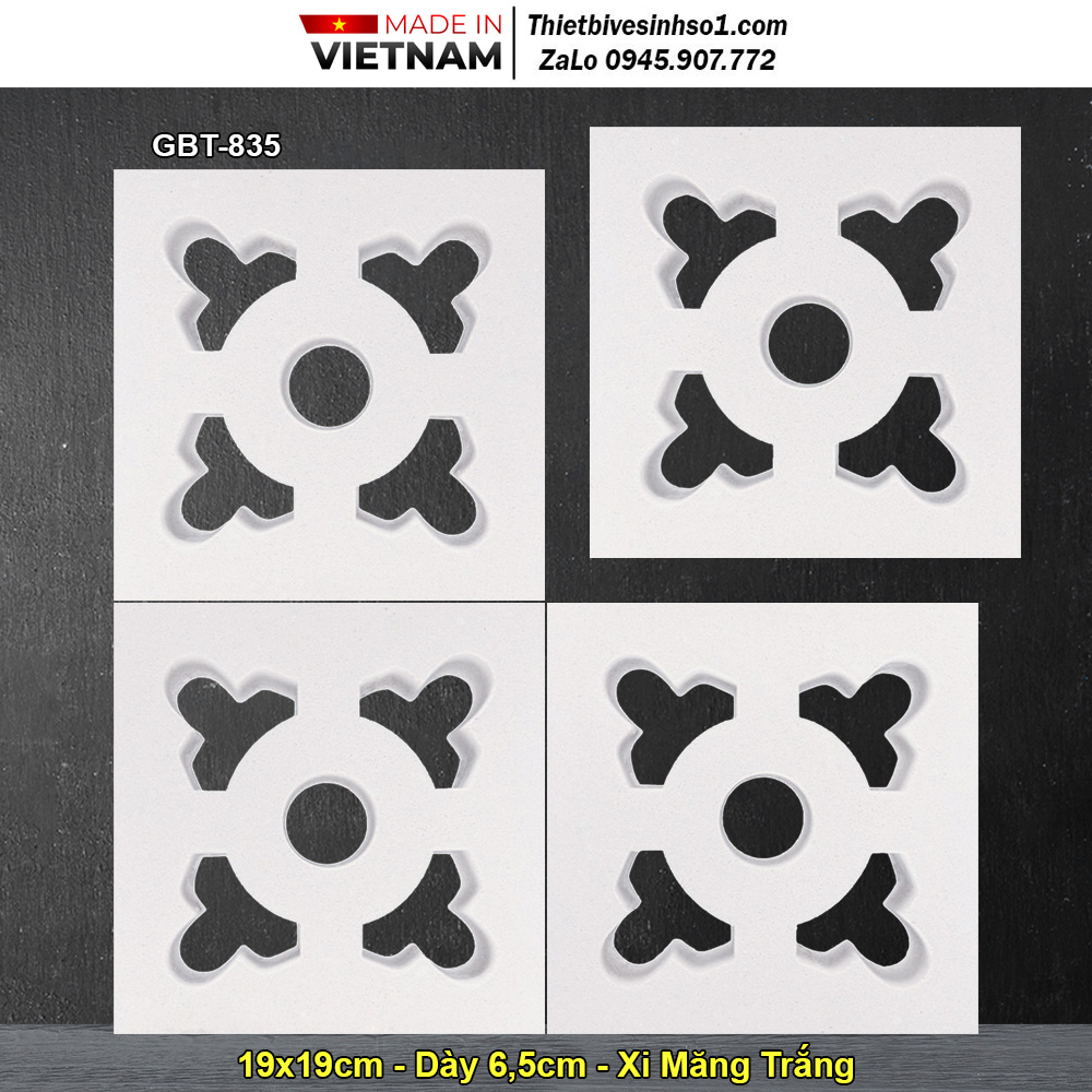 -Loại : 1 -Kích Thước: 190x190x65 mm -Diện Tích: 25 viên/m2 -Mã Sản Phẩm : GBT-835 -Chất Liệu: Xi Măng Trắng -Đơn Vị Tính: Viên