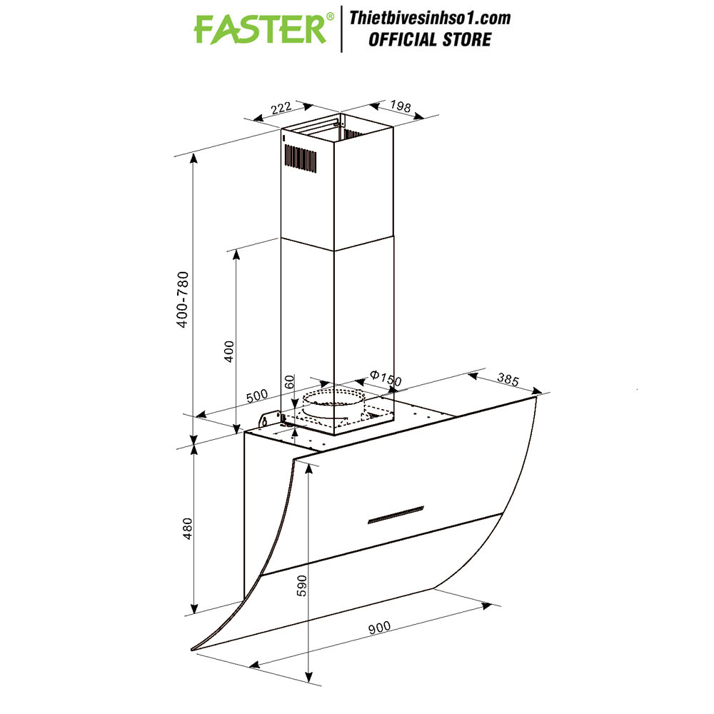 - KT : 900mm - Ống Thoát : 150mm - Bảo Hành : 3 Năm - Hãng Sản Xuất: Faster Chính Hãng - Mã Sản Phẩm : Faster FS 90CG New - Miễn Phí Vận Chuyển Khu Vực Hà Nội