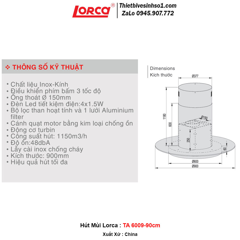 - Bảo Hành : 3 Năm - Hãng sản xuất: Lorca - Mã Sản Phẩm : Lorca TA 6009 - Kích Thước : 900mm - Sản xuất tại: China - Miễn Phí Vận Chuyển Hà Nội