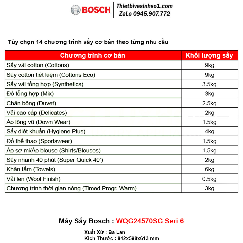 Xin Kính Chào quý khách đến với Tổng Kho Anh Thắng.Đáp ứng nhu cầu mua Thiết Bị Bếp Bosch chính hãng loại 1,chúng tôi là đơn vị tiên phong dẫn đầu về cung cấp Máy Sấy Quần Áo Bosch khu vực miền Bắc.Để đảm bảo khách hàng mua không bị đắt cũng như sai lệch về màu sắc,kích thước,chủng loại,mã số...chúng tôi đã ghi tất cả thông tin chi tiết trên từng hình ảnh của sản phẩm với độ chính xác tuyệt đối đúng theo nhà sản xuất công bố.Mọi phản hồi của quý khách xin vui lòng liên hệ Mr Thắng 0945907772 có Zalo trực 24/24h để giải đáp mọi yêu cầu của quý khách.