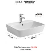 - Kích thước: 480x400x163 mm - Bảo hành: Chính Hãng - Xuất xứ: INAX Chính Hãng - Mã Sản Phẩm : AL-369V ( Kháng Khuẩn ) - Công nghệ: Nhật Bản - Chưa Bao Gồm Vòi + Xifong Thoát Nước