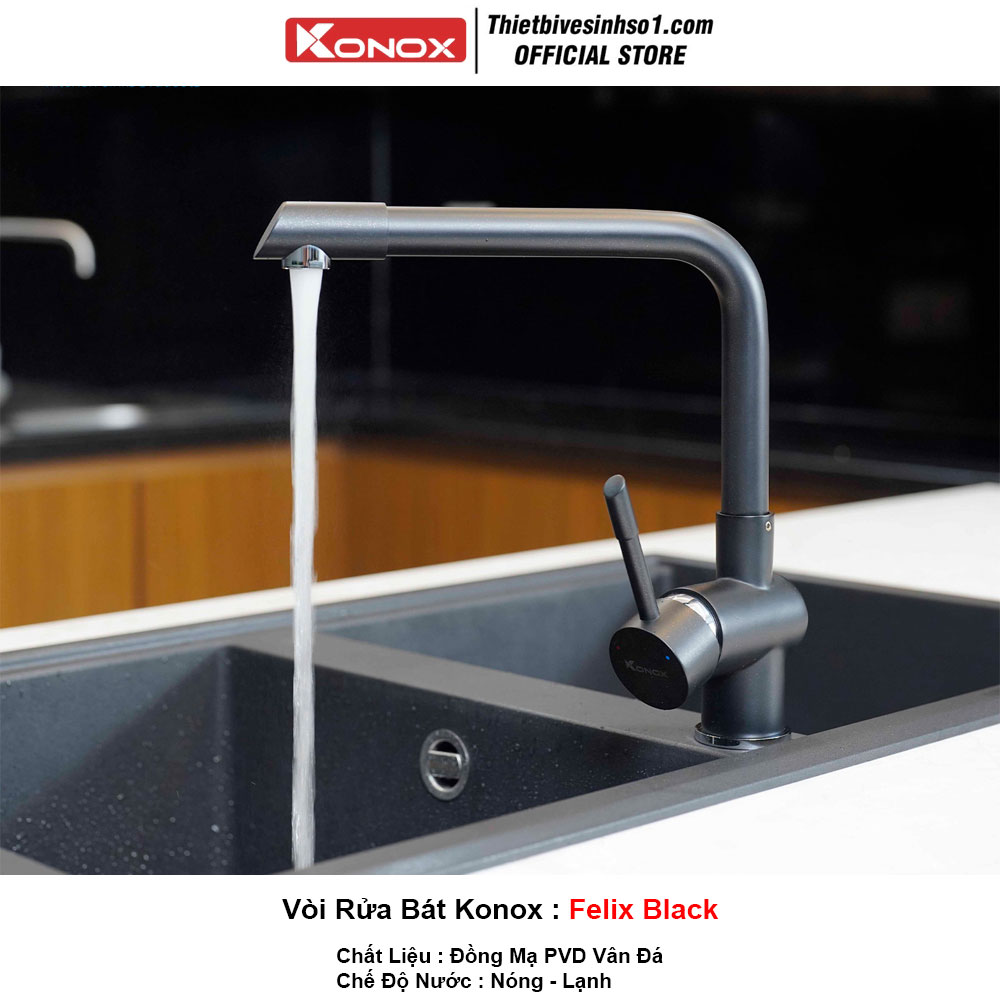 - Chế Độ Nước : Nóng Lạnh - Chất Liệu : Đồng Mạ PVD Vân Đá - Model : Felix Black - Hãng Sản Xuất : Konox Chính Hãng - Bảo Hành : 5 Năm