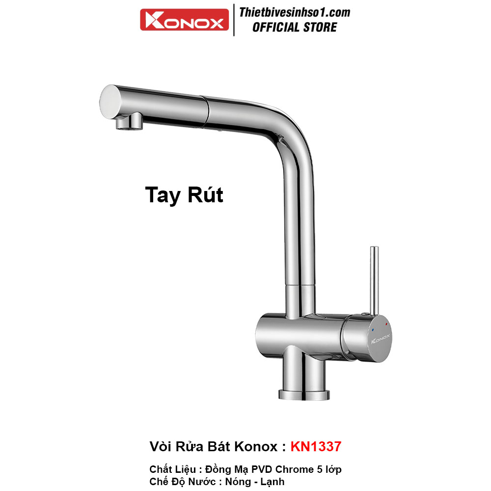 - Chế Độ Nước : Nóng Lạnh - Tay Rút - Chất Liệu : Đồng Mạ PVD Chrome 5 Lớp - Model : KN1337 - Hãng Sản Xuất : Konox Chính Hãng - Bảo Hành : 5 Năm