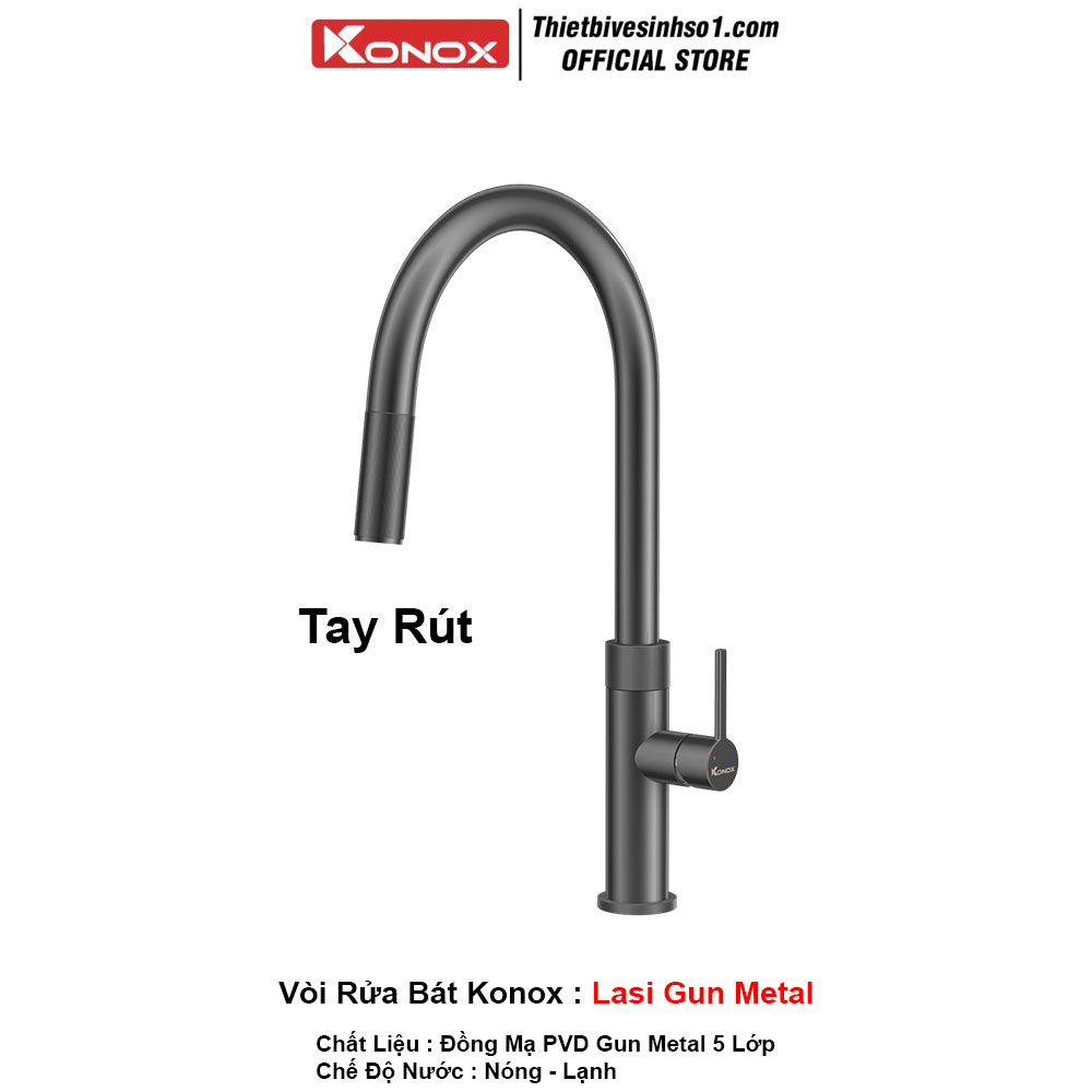 - Chế Độ Nước : Nóng Lạnh - Tay Rút - Chất Liệu : Đồng Mạ PVD Gun Metal 5 Lớp - Model : Lasi Gun Metal - Hãng Sản Xuất : Konox Chính Hãng - Bảo Hành : 5 Năm