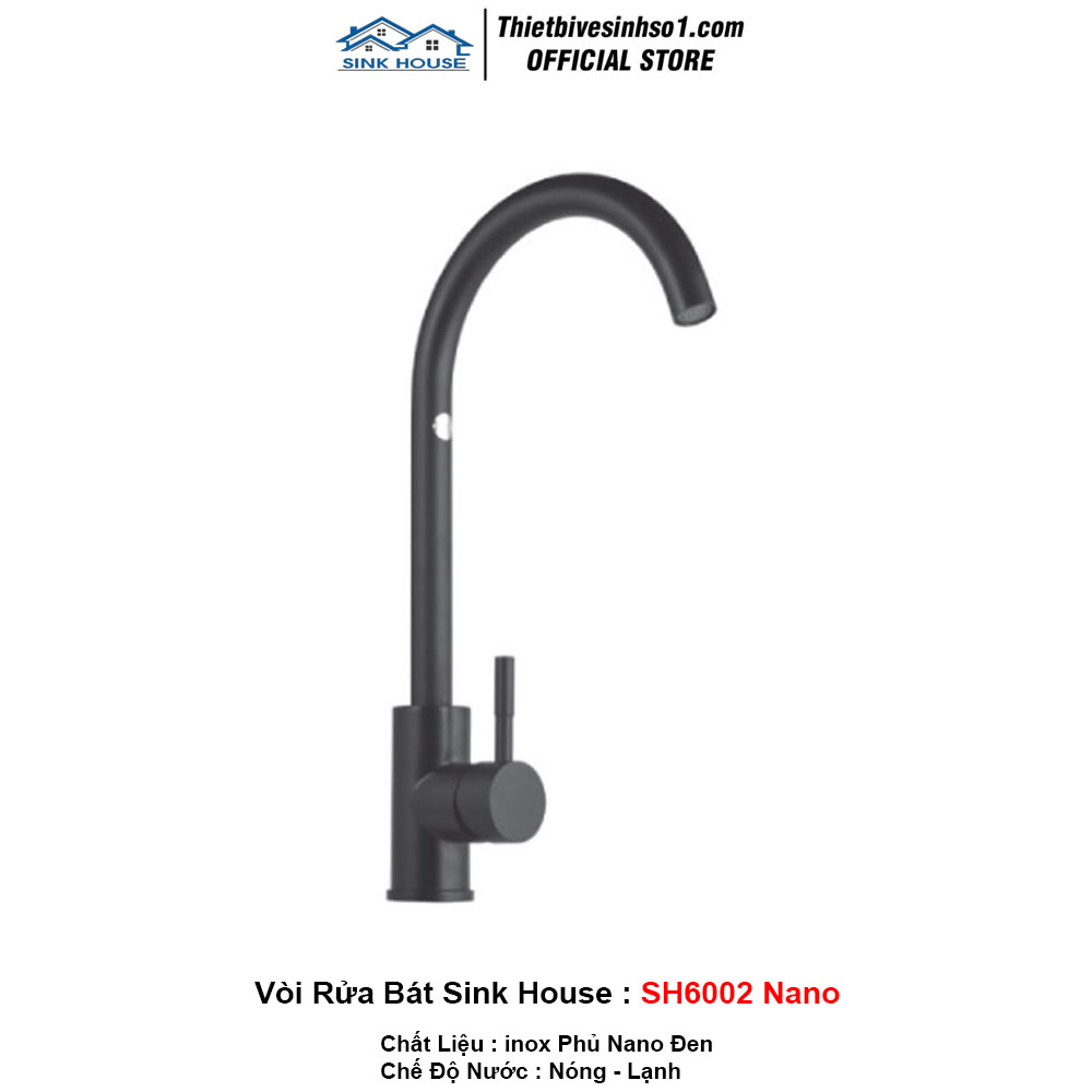 - Bảo hành: 3 Năm - Xuất xứ: SINK HOUSE Việt Nam - Mã Sản Phẩm : SH6002 Nano - Chất Liệu Chính : inox Phủ Nano Đen - Loại : Gắn Chậu