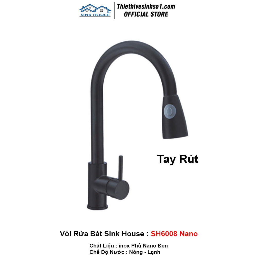 - Bảo hành: 3 Năm - Xuất xứ: SINK HOUSE Việt Nam - Mã Sản Phẩm : SH6008 Nano - Chất Liệu Chính : inox Phủ Nano Đen - Loại : Gắn Chậu - Đầu Rút