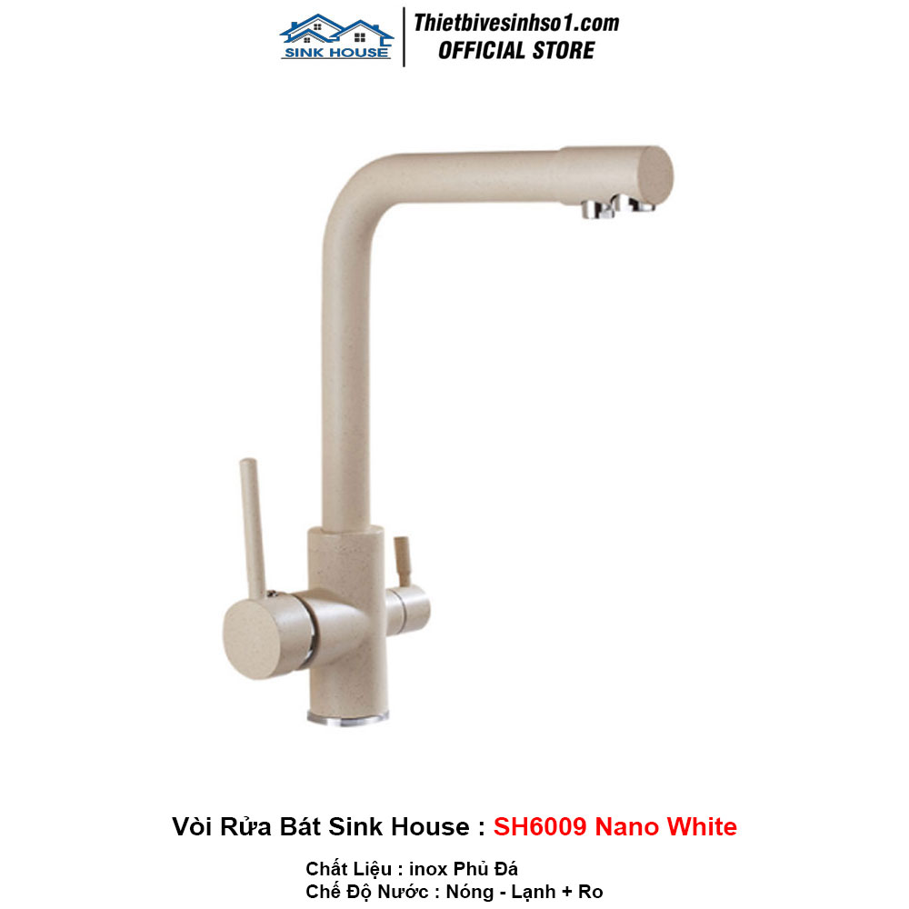 - Bảo hành: 3 Năm - Xuất xứ: SINK HOUSE Việt Nam - Mã Sản Phẩm : SH6009 Nano White - Chất Liệu Chính : inox Phủ Đá - Loại : Gắn Chậu - 3 Đường Nước