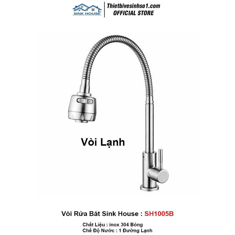 - Chế Độ Nước : 1 Đường Lạnh - Chất liệu: inox 304 Bóng - Hãng Sản Xuất : SINK HOUSE Chính Hãng - Model: SINK HOUSE SH1005B - Bảo Hành : 3 Năm