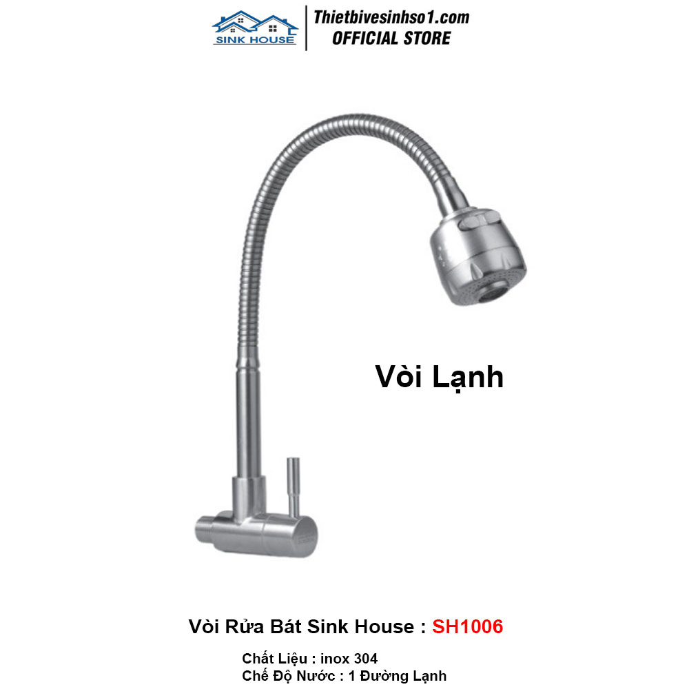 - Chế Độ Nước : 1 Đường Lạnh - Chất liệu: inox 304 Mờ - Hãng Sản Xuất : SINK HOUSE Chính Hãng - Model: SINK HOUSE SH1006 - Bảo Hành : 3 Năm