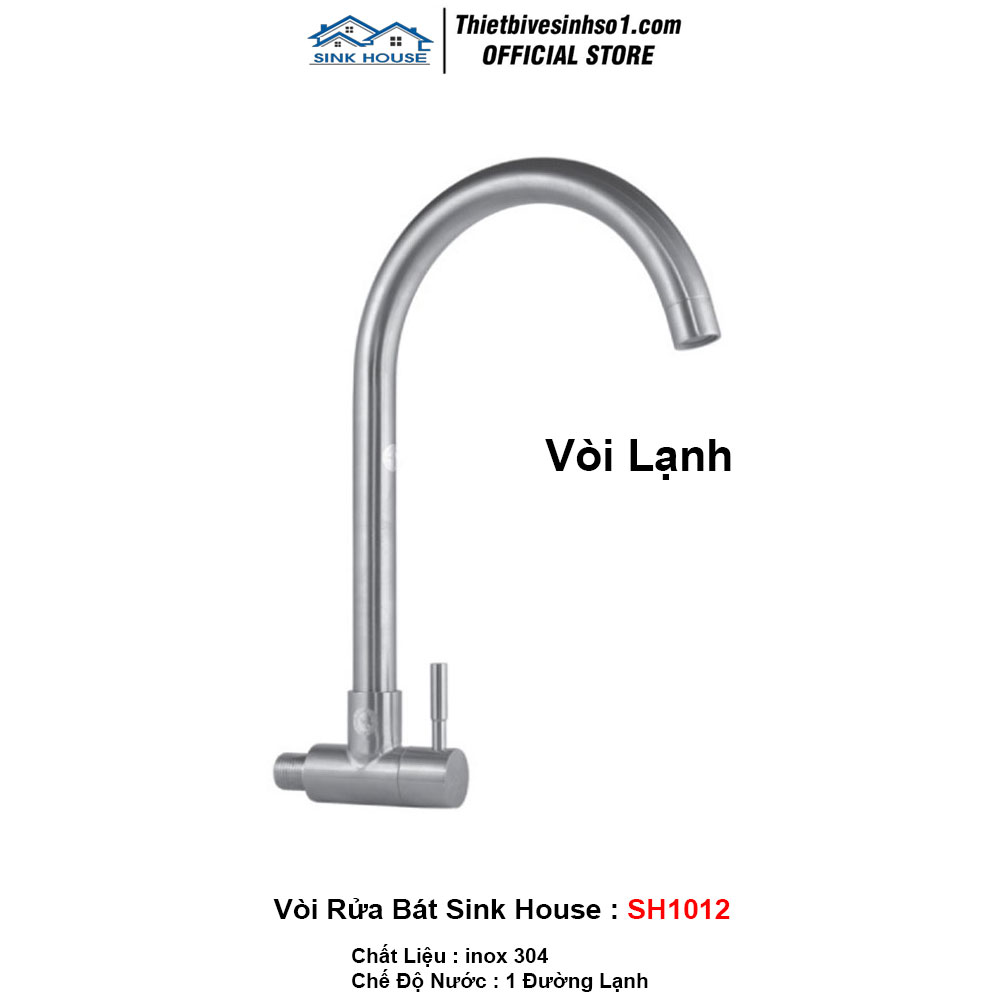 - Chế Độ Nước : 1 Đường Lạnh - Chất liệu: inox 304 Mờ - Hãng Sản Xuất : SINK HOUSE Chính Hãng - Model: SINK HOUSE SH1012 - Bảo Hành : 3 Năm