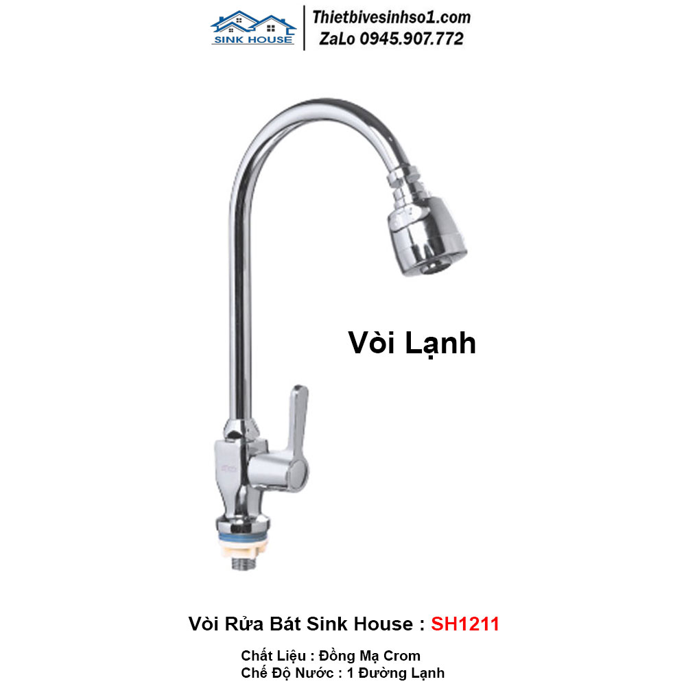 - Chế Độ Nước : 1 Đường Lạnh - Chất liệu: Đồng Mạ Cr/Ni - Hãng Sản Xuất : SINK HOUSE Chính Hãng - Model: SINK HOUSE SH1211 - Bảo Hành : 3 Năm