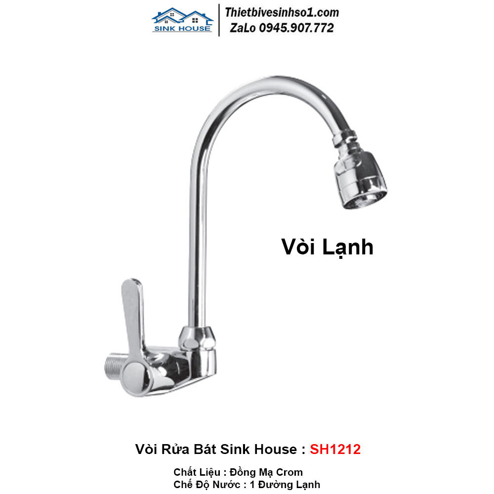 - Chế Độ Nước : 1 Đường Lạnh - Chất liệu: Đồng Mạ Cr/Ni - Hãng Sản Xuất : SINK HOUSE Chính Hãng - Model: SINK HOUSE SH1212 - Bảo Hành : 3 Năm